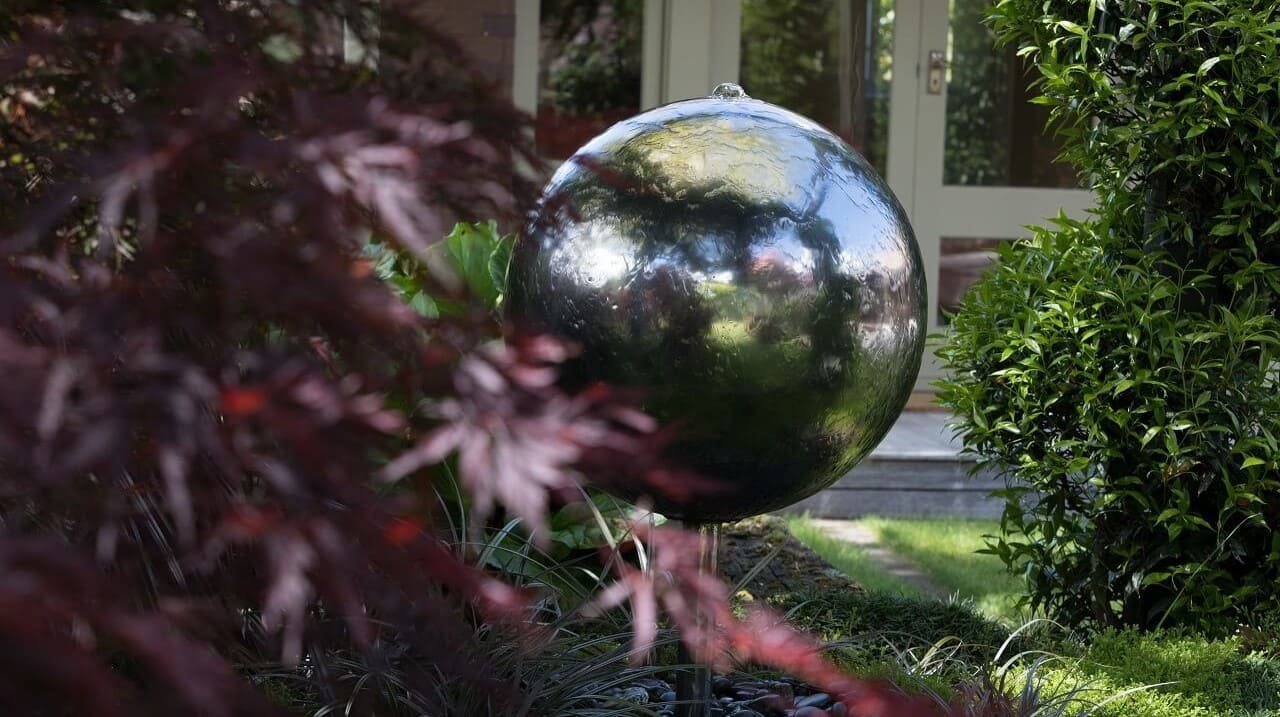 around color. The garden incorporates sculptures and u