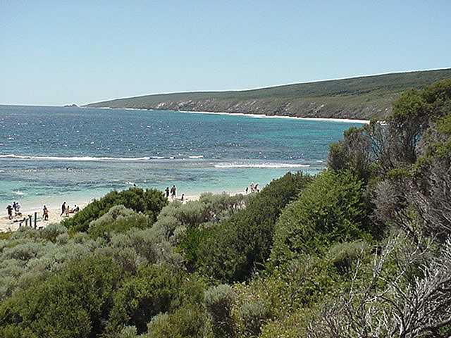 Beaches of Western Australia After hauling out our canoes and saying goodbye to the team of Rick, Deborah and Wally  from Milesaway Tours, we headed to Yallingup and western Australia's famed beaches. Following a quick lunch and some basic instruction in safety and riptides, we hit the beach. The beaches were beautiful, but the water was cold. The picture to the left shows the approach to Yallingup beach, which is reached by long series of stairs. The picture to the right provides a good view of the beach itself