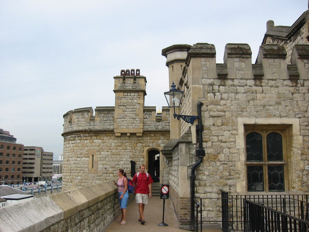 The Northern Wall of the Tower of London is open for visitors to walk upon, viewing London from the fortification.