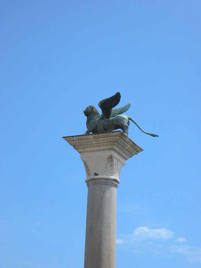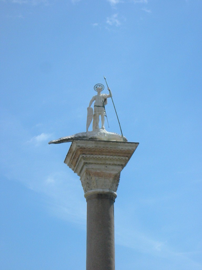 original Byzantine patron saint, St. Theodore. They are located at the end of the piazza, near the lagoon.
