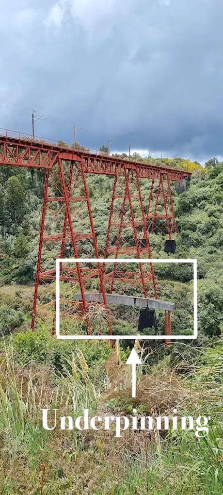 tallest central piers were underpinned (a process explained