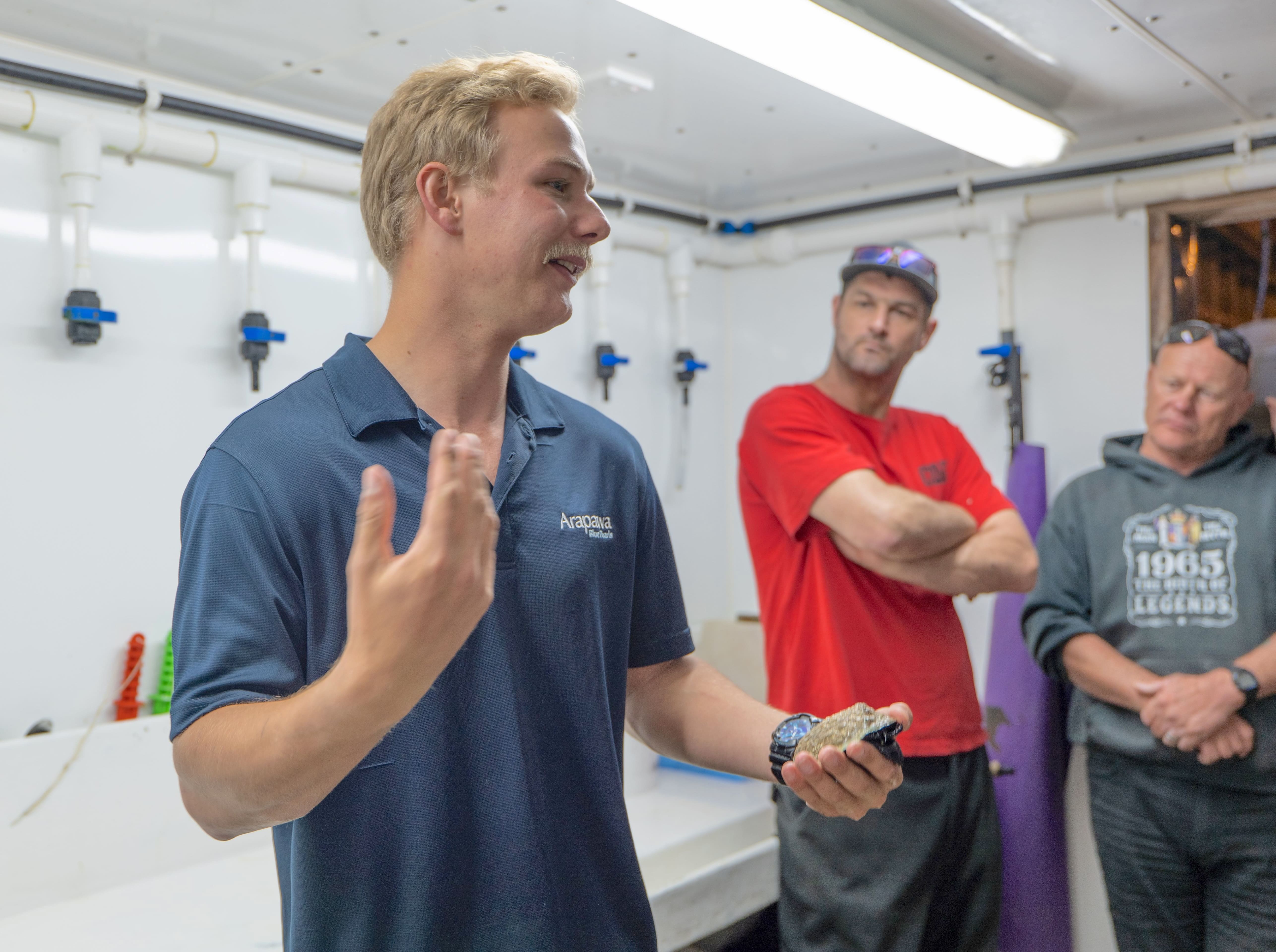 Bay, arriving at the Paua Pearl Farm. After