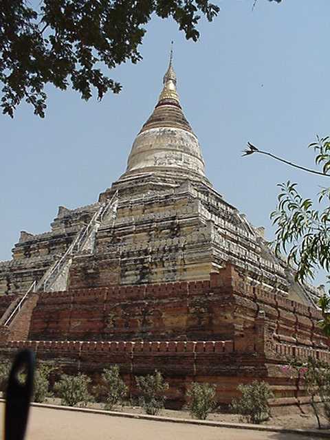 The Shwesandaw Paya features a series of five diminishing terraces, with likenesses of the Hindu god Ganesh on its corners. The cylindrical stupa or zedi is set atop an octagonal platform. Dating from the early period of Bagan's temple building era, it was one of only three buildings from the reign of its first king, Anawrata, and the first to have exterior stairways extending to the base of the stupa.